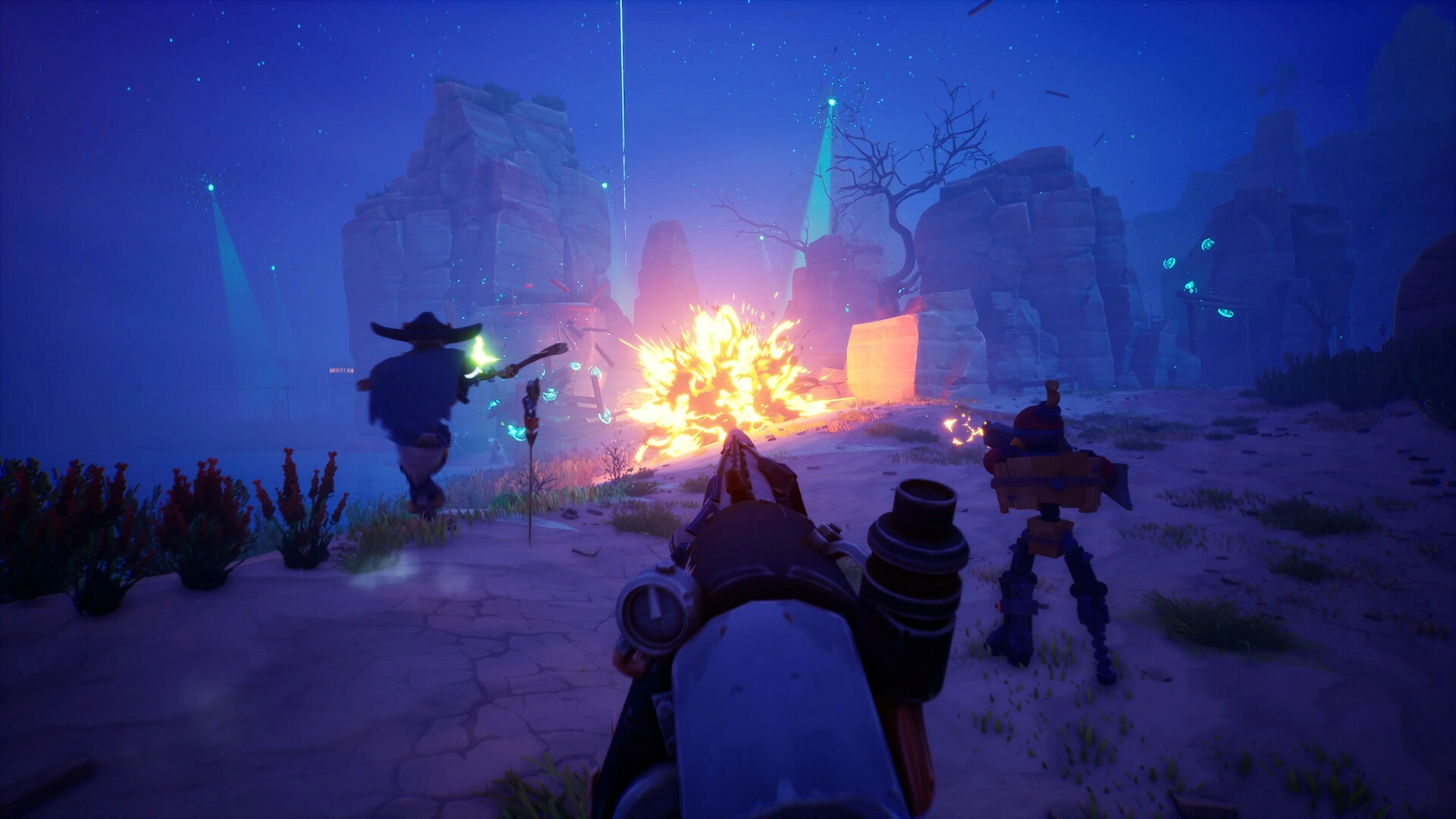 Far Far West — это кооперативный шутер на 4 игроков, где в бронзовом закате механические ковбои творят абсолютный хаос. Мистика, динамит и магия встречаются в проклятой пустыне, где контракт — это билет в бой, и каждый выстрел может стать последним.