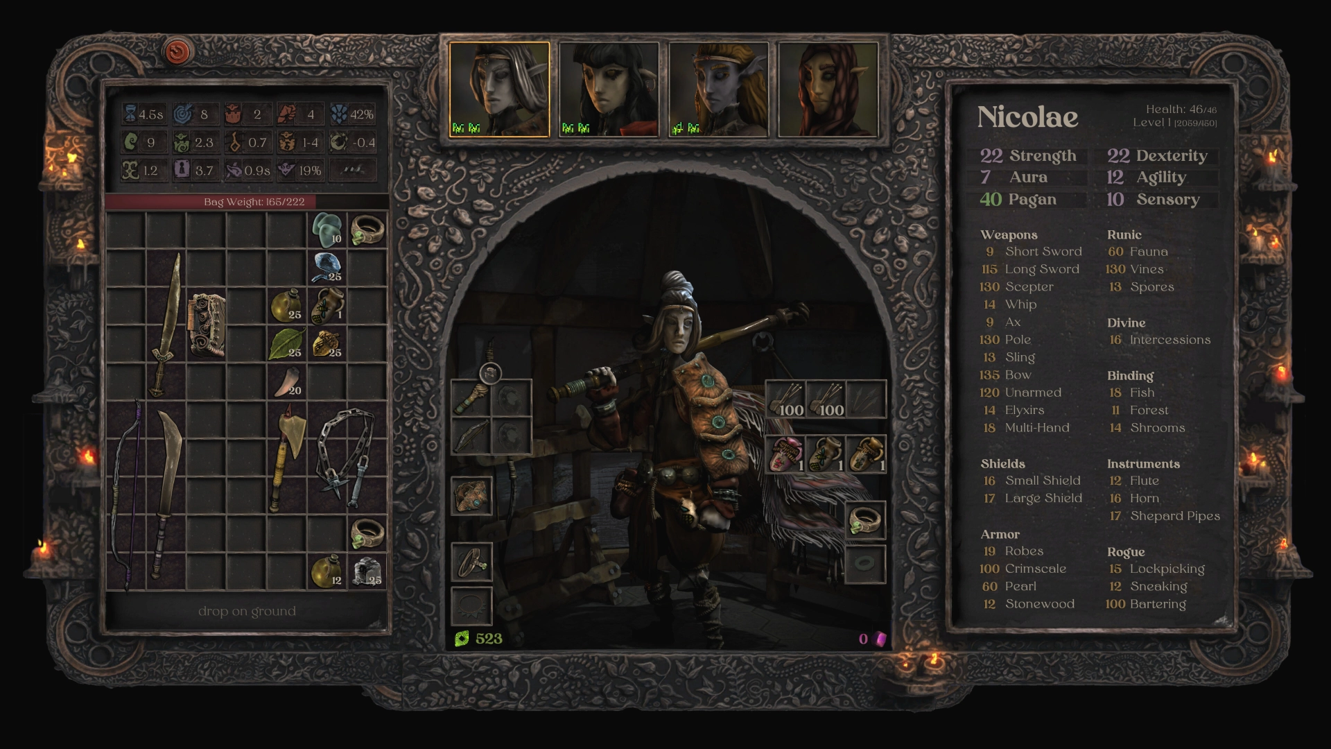 - Разные виды умений: оружие, магия, музыка и ремёсла.