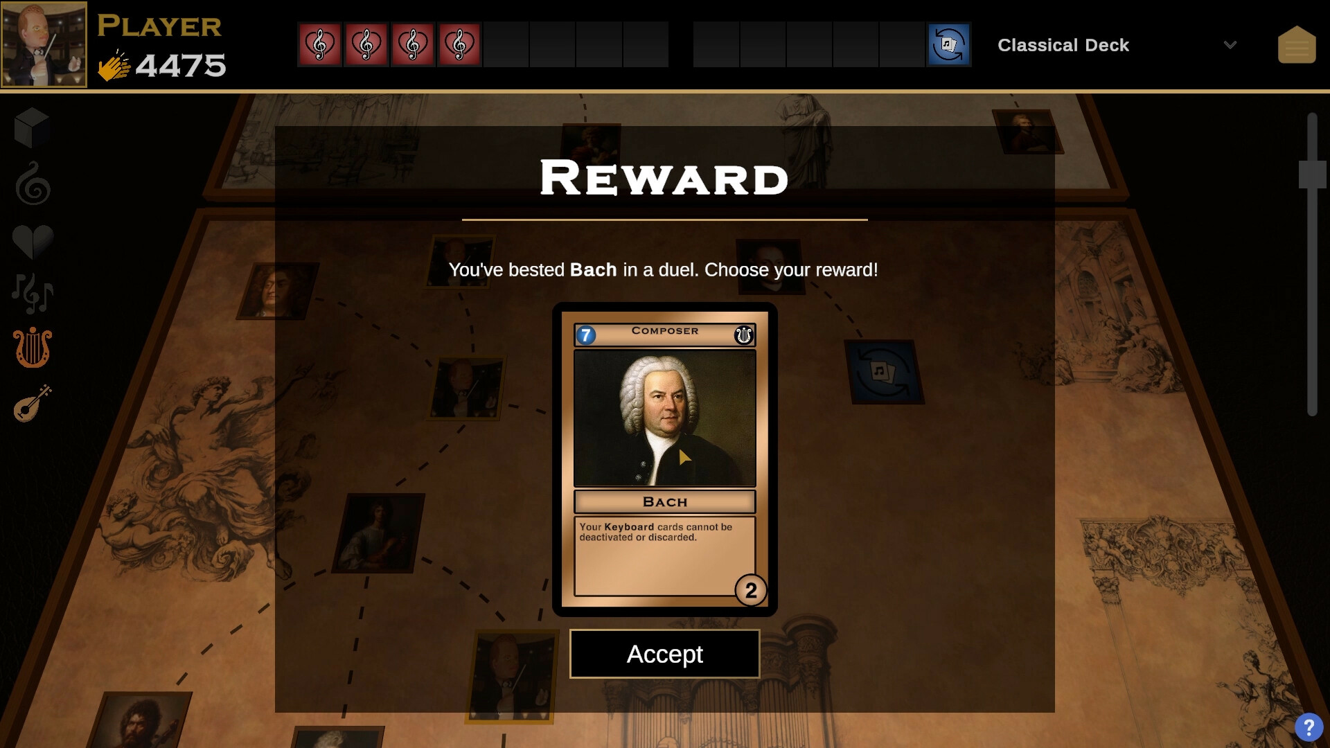 В этой невероятной коллекционной и карточной стратегии, игроков ожидает сочетание классической музыки и эпических дуэлей. К тому же, в вашем распоряжении будут исключительно легендарные композиторы, такие как: Бетховен, Чайковский, Моцарт и т.д., а также их культовые произведения.