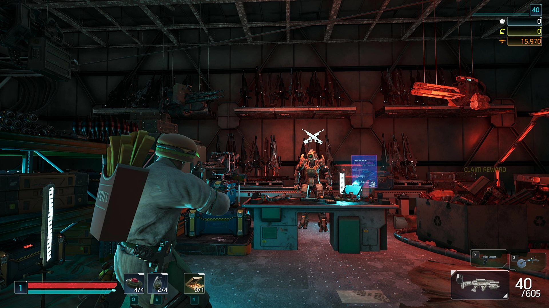 Проходите миссии в составе команды до 4 человек, уничтожая врагов и одновременно готовя заказы в бою. Стреляйте, катитесь, взрывайте и собирайте ингредиенты для идеальной пиццы. Каждый выстрел приближает к победе, а каждый ингредиент — к успеху бизнеса.